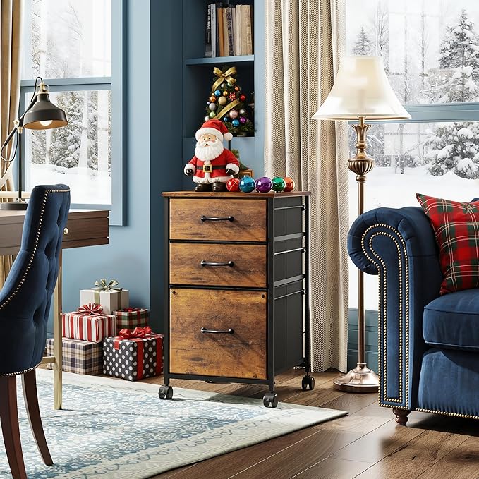 - Easy to Move: Rolling on 4 wheels, this mobile file cabinet can fix or move around your home office freely. Built-in brakes on front 2 casters to keep it in position and add stability. Unique fabric drawer design makes it only weigh 22 lbs. and light to move.
