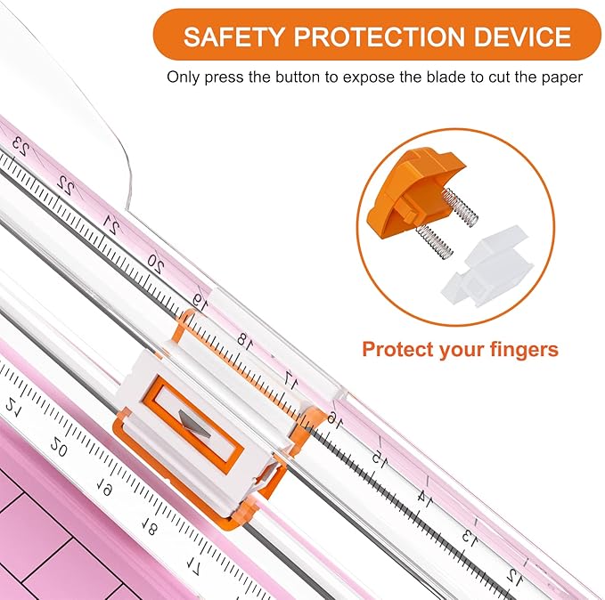 - SHARP YET SAFE: The blade of this paper cutter slider is incredibly sharp; It can cut several sheets of paper (80g/m2) at once; But it's also covered in a way that is much safer than a typical guillotine paper slicer; So you can't cut yourself; It's very user-friendly, even for children (Tips: 1. Please press down a little harder on the cutting blade as you slide for a clean cut; 2. Cutting a little less at a time can help prolong the blade's service life.)