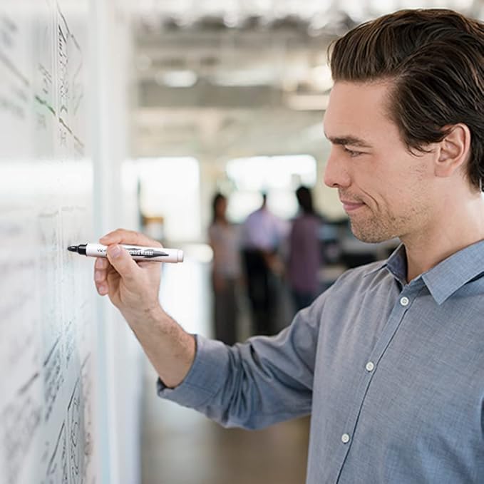 - Fine bullet tip for precision and detail work on any non-porous surface: whiteboards, glass, and plastics