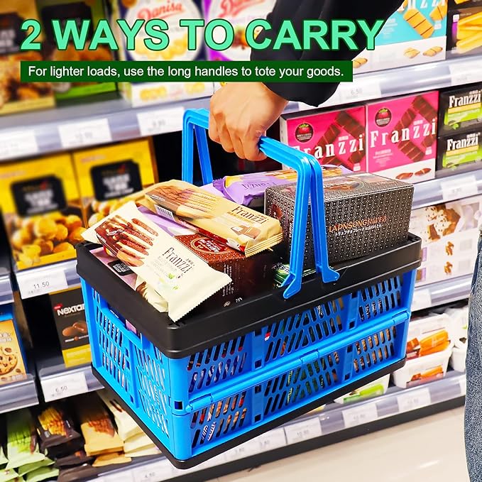 - 1.The Collapsible Plastic Grocery Shopping Baskets to keep Laundry,Toys, Books , Snacks,Tools, Also Can Be Used While Shopping.