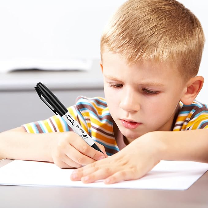 Permanent Markers, 128 Count Black Permanent Markers, Fine Point, Waterproof & Smear Proof Markers, Quick Drying, Office Supplies for School, Office, Home