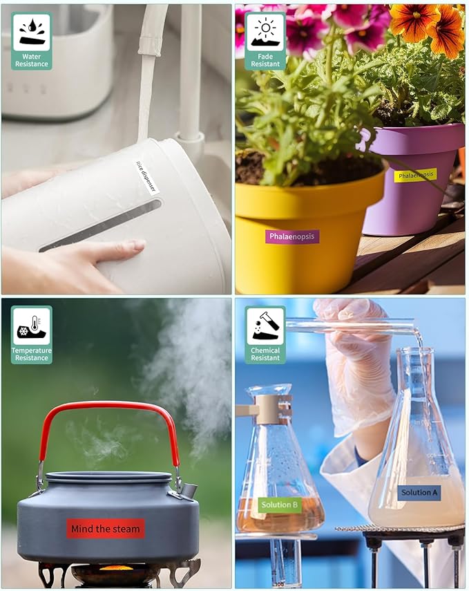 - Features: 1). These 12mm 0.47 label tapes have split-backing, making the label easy to peel and apply. 2). Strong adhesive, no sticky residue remains when the 12mm labels are removed. 3). The tze 12mm laminated white tape is Print clear, Water Resistant, Chemical Resistant, Abrasion Resistant, Fade Resistant, and Temperature resistant