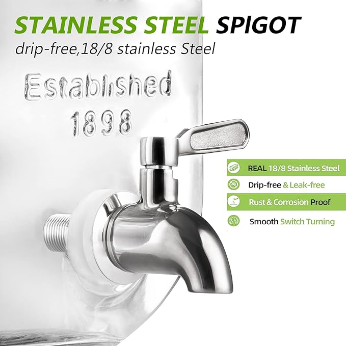 1 Gallon Drink Dispenser with Spigot 18/8 Stainless Steel – Airtight & Leakproof Glass Sun Tea Jar with Anti-Rust Lids, Beverage Dispenser for Parties - Laundry Detergent Holder