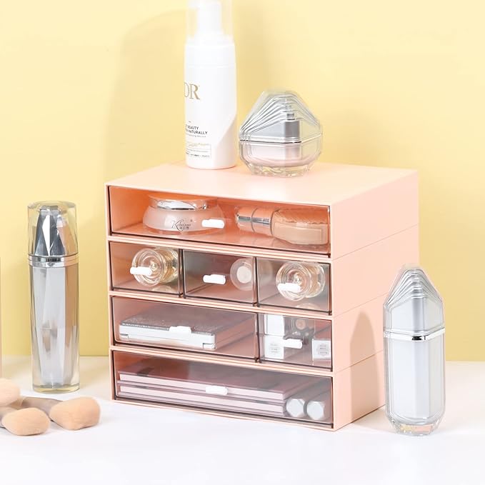 - Convenient Organizer: These Stackable desk organizers with multiple drawers of different sizes can be freely placed in arbitrary order, satisfy your individuation storage. The drawers are transparent, easy to identify different items to choose and access.