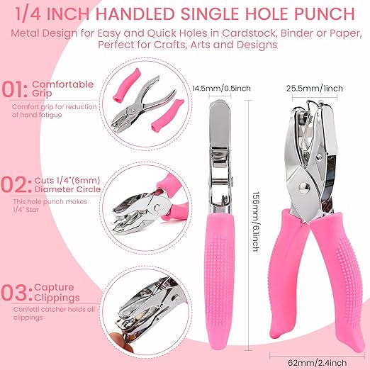 - GREAT FOR CRAFTS PROJECTS: Hole puncher single is an excellent tool you can use to create unique paper art. You can use a hole punch to make scrapbooks, greeting cards, and so much more, whether you need to punch holes in paper for filing and storage or creative arts and crafts. This hole punch is ready to help.