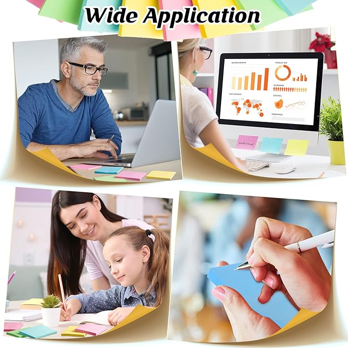 - Easy to use: colorful sticky notes are easy to use, you can write some information on the sticky notes and stick them on smooth surfaces such as computer monitors, binders, desks, and so on. ; They are also suitable for school, office and home use