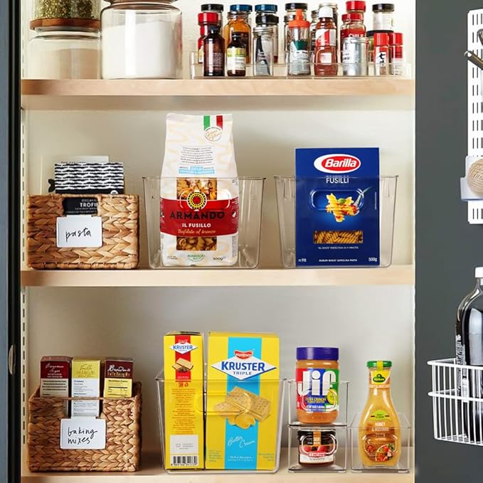 Set of 8 Clear Plastic Storage Bins, 4 Large and 4 Small Stackable Storage Containers for Pantry Organization and Kitchen Storage Bins,Home Edit and Cabinet Organizers