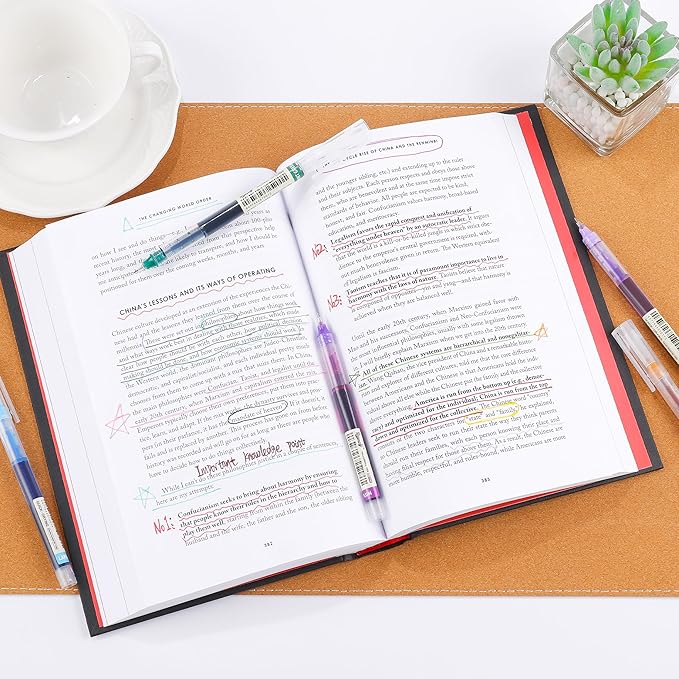 - SUPER QUICK DRYING : with precision tip and smooth writing ink and will not leak ink, the rollerball multicolored ink dries quickly that help you keep work neat, colored pens for journaling, color pens for note taking