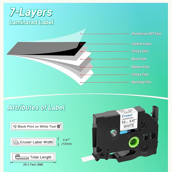 - 💯12-Month Replacement Warranty ➤ All products in Cruxer are certified by ISO9001 & ISO14001. Cruxer P Touch Label Tape is committed to providing each customer with the highest standard of customer service. Please confirm whether Tze 12mm tape is compatible with your printer before purchase. If you have any other questions, please feel free to contact us.