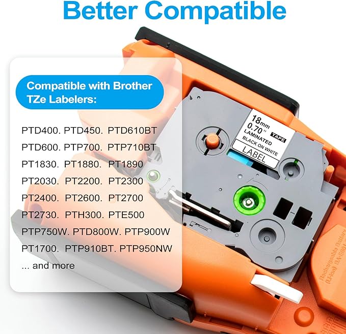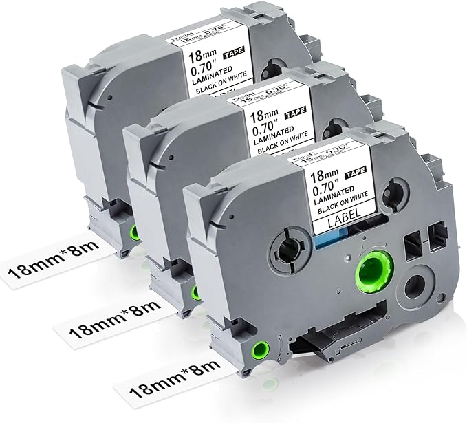 TZe-241 18mm 0.7 Laminated White Tape TZe Replacement for Brother TZe241 P Touch Label Tape 3/4, 18mm TZe Compatible with Brother Label Maker PT-D400 PT-D460 PT-D600 PT-P710BT, 3 Packs