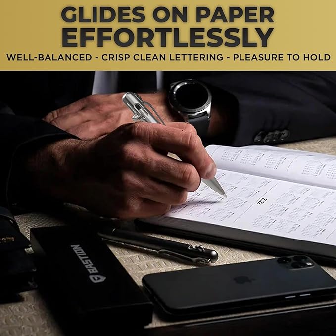 - Bolt Action Mechanism: Our J-shaped bolt action mechanism provides a secure lock with non-wearing parts and a simple one-push operation. BASTION pens combine functionality and elegance with its high-caliber machined CNC precision design.Our pens are a prestige symbol because of their sturdy construction, simple retractable operation, and beautiful appearance.