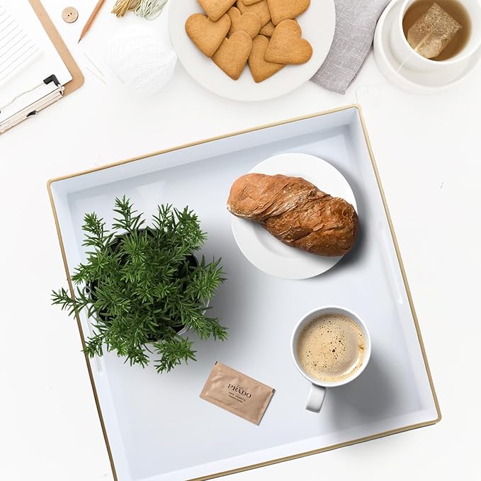 Spsyrine Decorative Tray, 13" Plastic Square Coffee Table Tray with Handles for Living Room, Ottoman, Bathroom Decor
