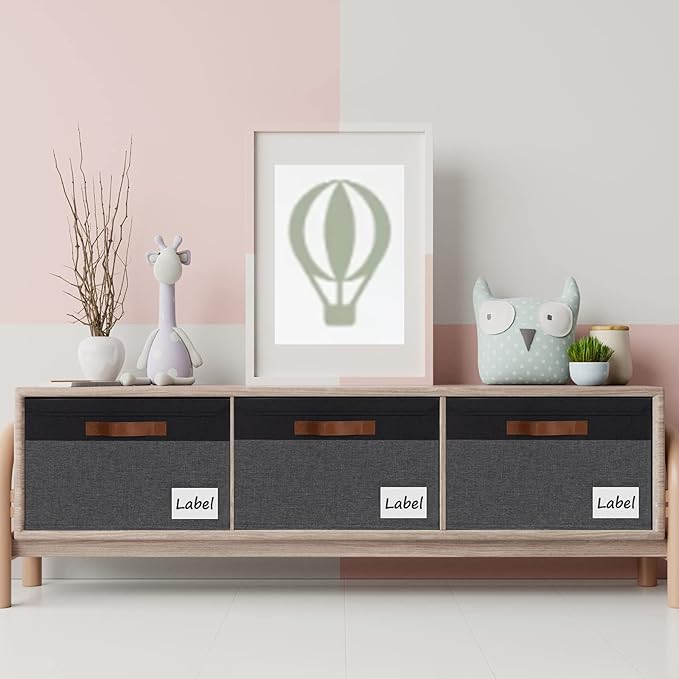 - EXTRA LARGE DIMENSION: Set of 3, dimensions (each): 15.75(L) x 11.8(W) x 10.2(H) inch, storage capacity of the cube storage bins are 32L, which can hold a large number of items to organize your home or office. Each large storage basket with lids have a eye-catching label to classify the stored items. Perfect size and neutral color match most of your home decorations and styles while keeping your home organized