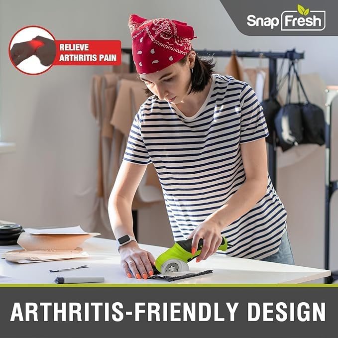 - 【Extraordinary Versatility】 -SnapFresh cordless electric scissors is perfect for cutting cardboard, leather, plastic, canvas, carpet, wallpaper, and more, handling materials up to 1/4” thick.It ensures low-noise, efficient cutting that goes far beyond traditional scissors.