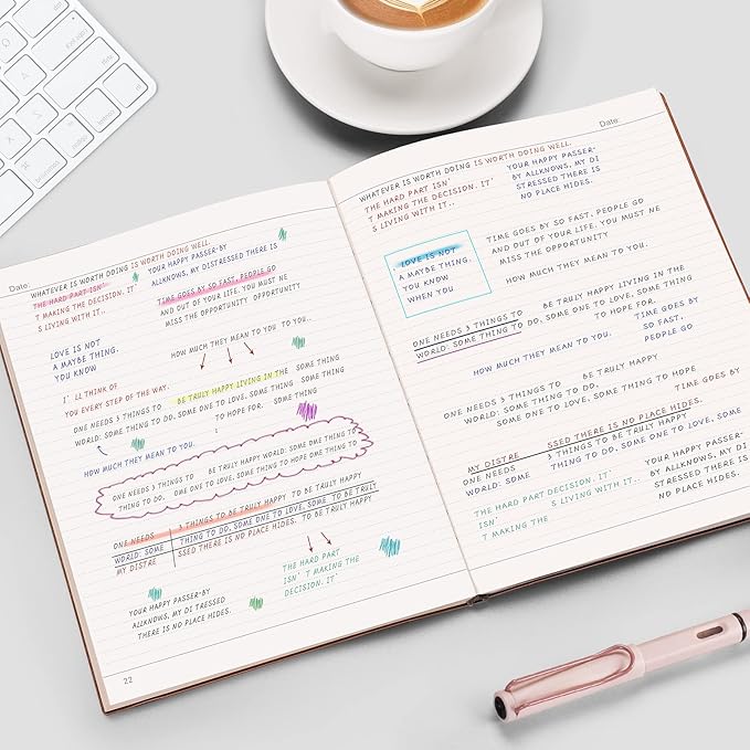 - PU Leather Softcover: Premium PU leather soft cover protects the ruled notebook from wear and tear, sturdy thread-bound binding combined with softcover makes the notebook 180° lay flat, thus giving you a comfortable writing experience