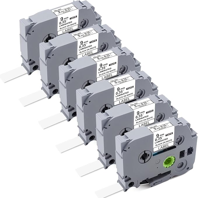 - 【Package includes】: 6-Pack TZe-221/TZE221/TZ221/TZ221s/TZ-221/TZc-221 Replacement for Brother P-Touch Label Tape 9mm 0.35 Laminated White, Color: Black Print on White Tape. Width: 3/8" (9mm). Length: 26.2' (8m)