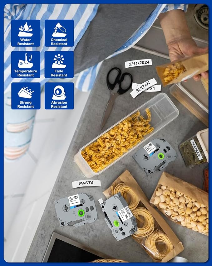 - 【P-Touch Label Maker Tape】: Indoor or outdoor labels,These Laminated label tapes are Water Resistant, Grime Resistant, Grease Resistant, Temperature Resistant, Abrasion Resistant, Chemical Resistant as well as Fading Resistant.