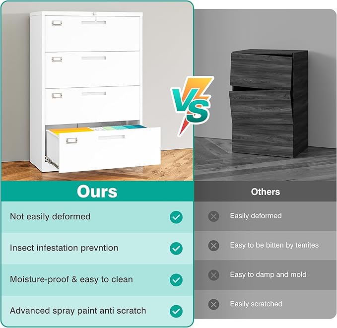 - 【Heavy File Cabinet】: The file cabinet is sturdy and durable, with an all-metal design; coated with electrostatic phosphorus-free epoxy spray coating, making it very strong and resistant to corrosion and rust; the top of the office vertical file cabinet can withstand up to 120 pounds the weight of. The sturdy construction makes this cabinet sturdy and durable, making it ideal for extended use in the home or office.