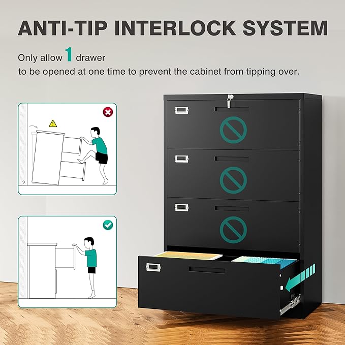 - 【Anti-tilt Mechanism】: All drawer interlocking mechanisms are designed to prevent tilting and ensure that only one drawer can be opened at a time; the file cabinet has 1 lock and 2 foldable keys to effectively protect your private documents and valuables. It is suitable for various scenes such as offices,home