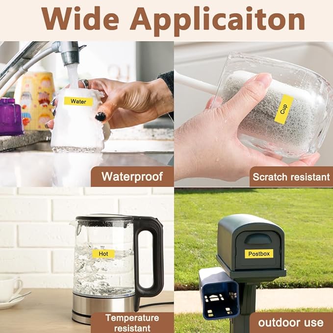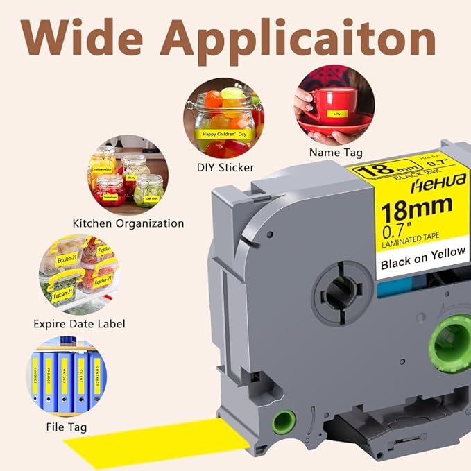 - Wide application: Compatible for Brother P-touch TZe 641 label tape is ideal to print clear, good-looking and durable labels. These labels are great for shelving, kitchen use, cabinets, file folders, USB sticks, food containers, storage boxes, personal possessions, children's school equipment with it's superior adhesive