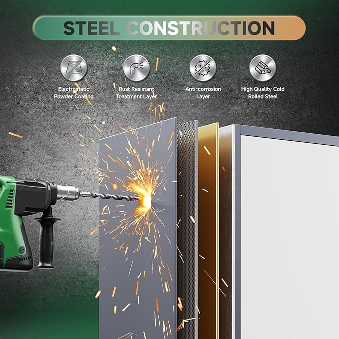 - Professional Design: Metal cabinet adopts an upgraded version of the three-point lock system, and the steel rods are thickened to provide higher security for your valuables and important items;anti-collision reinforcements, keeping quiet while protecting when you opening or closing the door;Adjustable feet can ensure the balance of the metal cabinet in various environments;pre-holes on the back, enable to be mounted to the wall