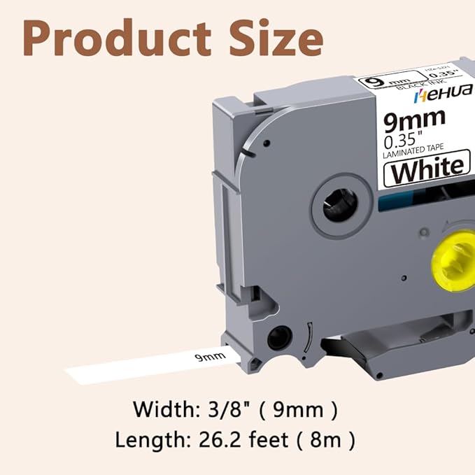 - Size - 3/8" ( 9mm ) x 26.2' ( 8m ) each label. Color - Black letter on white tape