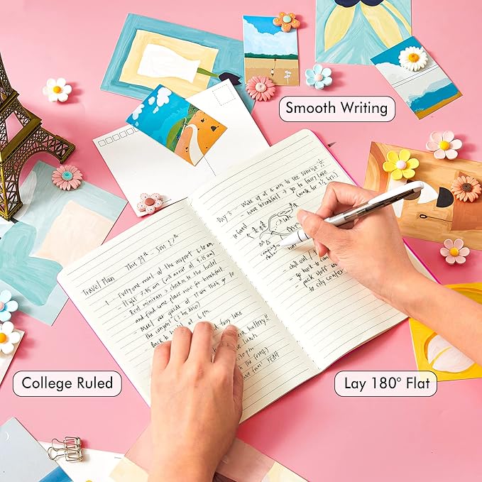 - These travel journals bulk for women have 92 blank lined pages (46 sheets), which would be sufficient for daily usage. The note taking notebooks have a smooth cover, round corners and tight stitching, which are designed to lay 180° flat. Some quick notes can help you remember important dates and find the page you want in a very short time.