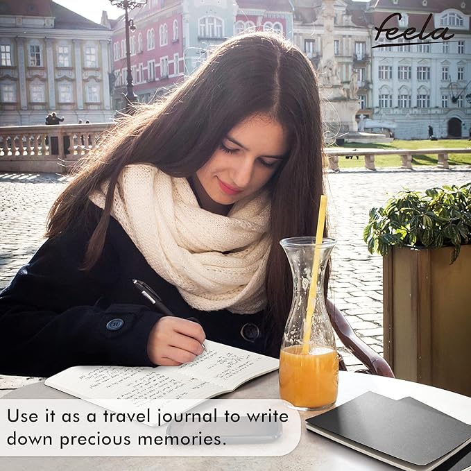 - Feela 8 Pack Soft Cover Journals include 8 black A5 college ruled soft cover travel journals. 250 GSM colored paper cover outside and 80 GSM smooth writing lined pages inside.