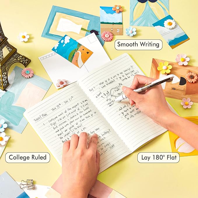 - These travel journals bulk for women have 92 blank lined pages (46 sheets), which would be sufficient for daily usage. The note taking notebooks have a smooth cover, round corners and tight stitching, which are designed to lay 180° flat. Some quick notes can help you remember important dates and find the page you want in a very short time.