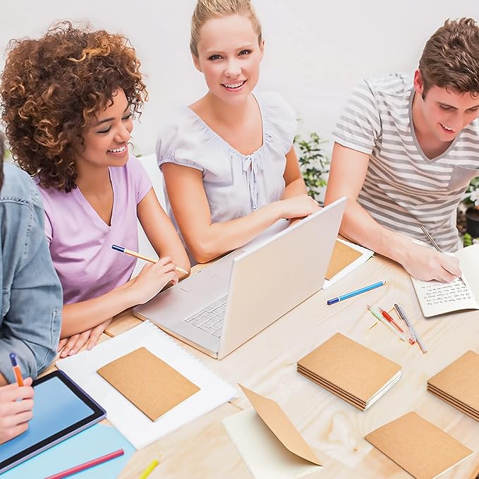 - Feela Kraft Notebooks contains 170 Brown unlined kraft cover blank notebooks. Each of them measures 4.25” x 5.5”, which is perfect to carry in bag and easily held by hand.