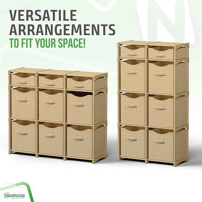 9 Cube Closet Organizers And Storage | Includes All Storage Cube Bins | Easy To Assemble Closet Storages Unit With Drawers | Room Organizer For Clothes, Baby Closets Bedroom, Playroom, Dorm (Beige)