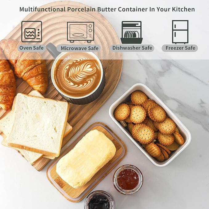 - Warm Tips: The porcelain butter container is microwave, dishwasher and freezer safe, except the lid. Farmhouse butter dish with functionality and attractive appearance is the ideal for Christmas gift