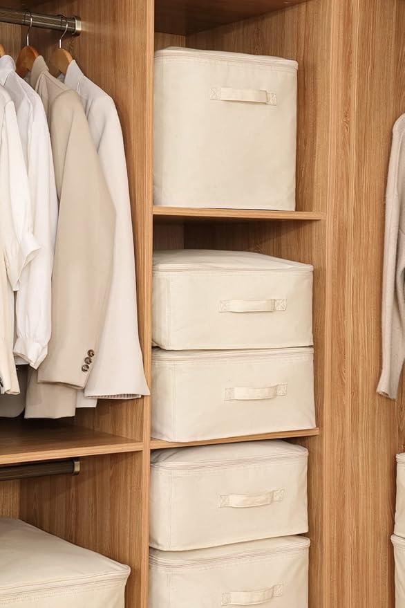 Decorative Basket Rectangular Fabric Storage Bin Organizer Basket with Handles for Clothes Storage (24 x 15.7 x 9, Beige)