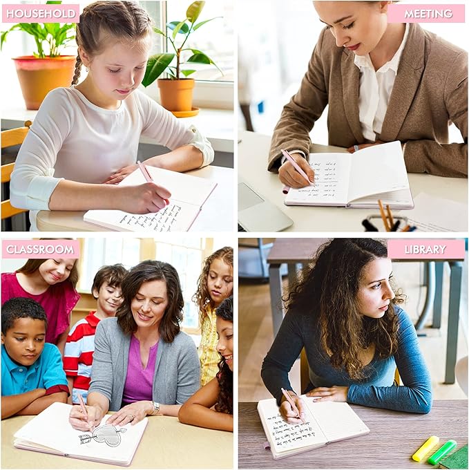 - Feela 24 Pack Classic Ruled Notebooks contains 24 rose pink ruled sturdy cover notebooks and 24 Black Retractable Pens. Each of the notebooks measures 8.3” x 5.1”, which is perfect to carry and easily held by young girls and boys. These black cute pens are customized to be placed in the pen holder, which is pretty convenient.