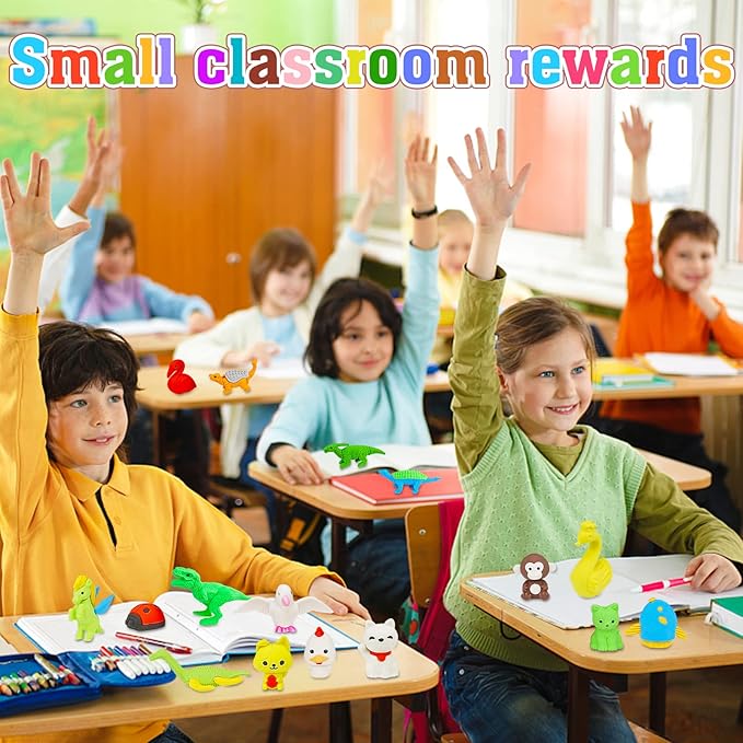 - FUN DESK PETS:Perfect for classroom rewards, these animal erasers bulk packs solve the hunt for affordable, fun erasers for kids bulk. The cute erasers for kids keep young minds engaged during lessons or travel. Use them as Valentine’s erasers for kids, back-to-school party favors, or Easter egg fillers – their vibrant colors and premium quality make theEaster giftfor kidsstand out. Plus, they’re non-toxic and erase cleanly