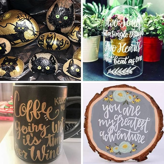 - 【Multipurpose】These wonderful paint pens can be used on multiple surfaces, such as rock, ceramic, wood, leather, plastic, fabric, canvas, stone, glass, metal, chalkboard craft supplies etc