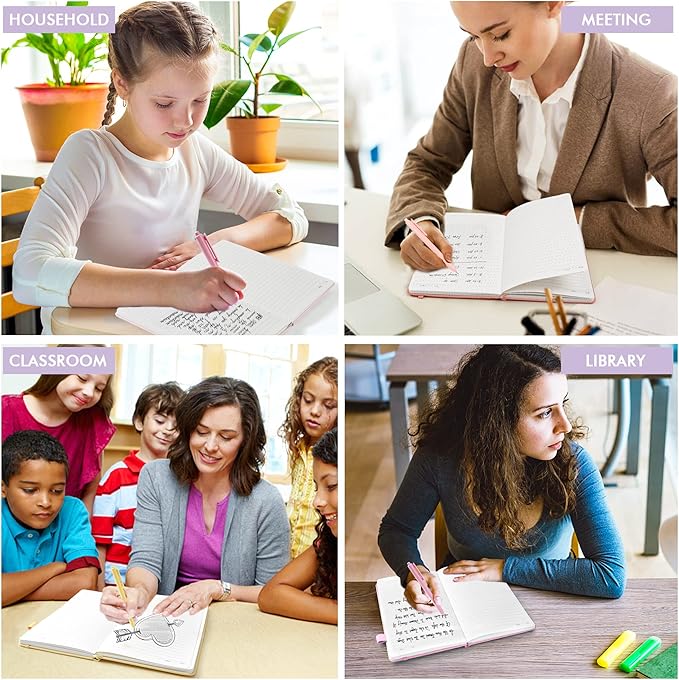 - 3 different pastel colors for these notebooks, Light Yellow, Light Pink and Pale Orange. There are 3 Black Retractable Pens in the box. You can use it as soon as you receive it. These pens are perfect to be put in the pen holder of the classic ruled notebook. Large tube has the capacity of restoring more ink, which makes them long lasting. Quick drying can avoid smearing and smudge.
