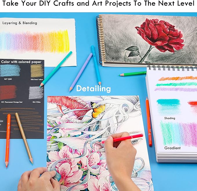 KALOUR Professional Colored Pencils,Set of 300 Colors,Artists Soft Core with Vibrant Color,Ideal for Drawing Sketching Shading,Coloring Pencils for Adults Artists Beginners