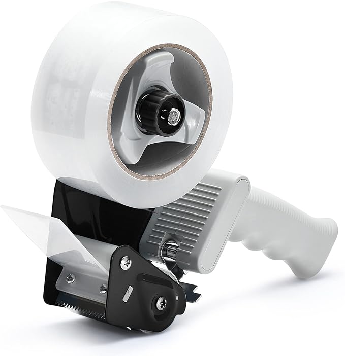 - ADJUSTABLE BRAKE & TENSION KNOB: Adjustable brake is a featured function in our professional tape dispenser which allows you to control the tension during sealing. Adjust knob allows you to adjust the tightness of the tape to your own feeling.