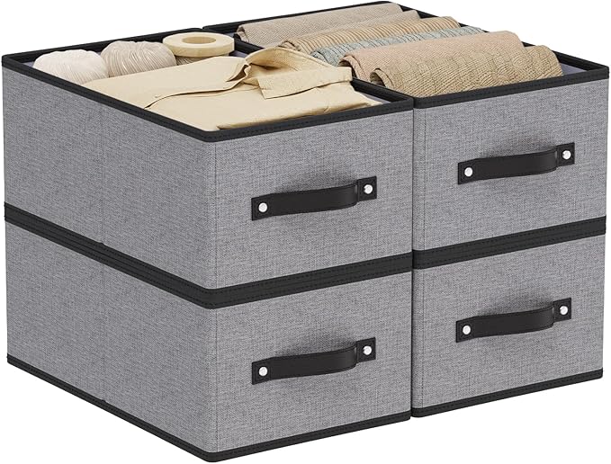 - Durable Enough: Collapsible storage bins with handles are made of high-quality linen fabrics, and the inner layer is made of non-woven fabric, which is durable and strong enough to hold your items. 2 faux leather handles make it easy to pull or carry