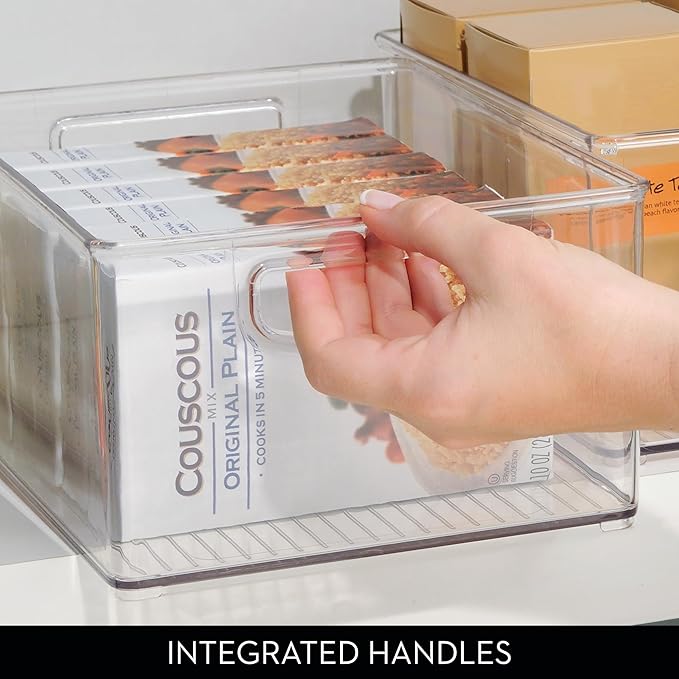 - GREAT FOR CABINET STORAGE – These kitchen storage containers are expertly designed and ideal for organizing single-serve pouches, packets, snacks, and more. Plus, the clear design makes it easy to see what’s inside at a glance.