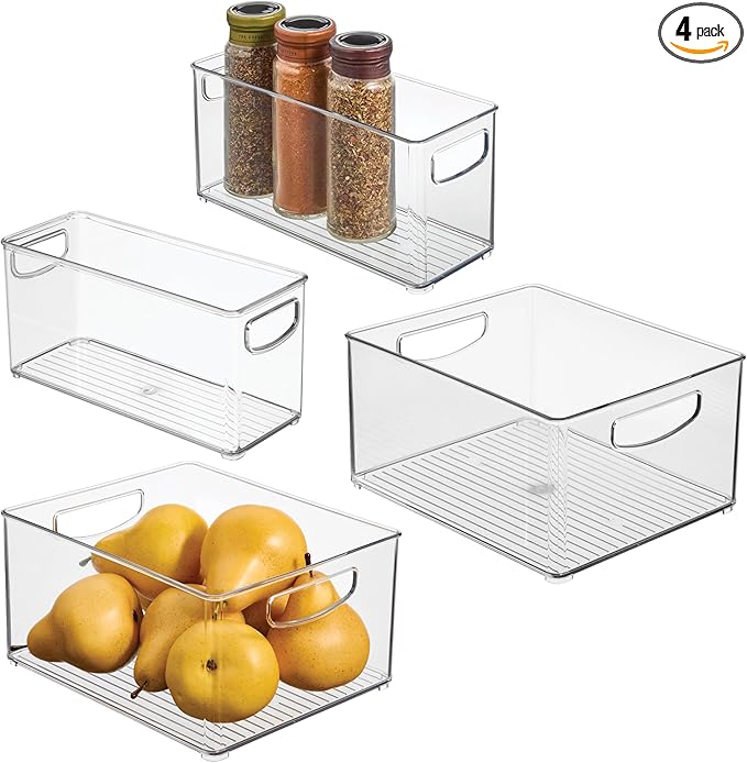 - 4-PIECE PANTRY/CABINET BIN SET – The iDesign 4-Piece Cabinet and Pantry Organization Set includes two wide and two thin storage bins to help you bring stylized organization to your kitchen.