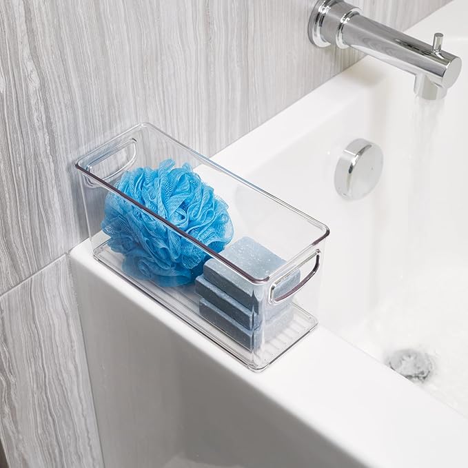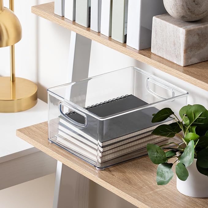 - EFFICIENT SIZE – Whether you use them on their own or with other iDesign kitchen storage organizers, they’re just the right size to be functional without getting in the way. The wide bins measure 10” x 8” x 5” and the thin bins measure 10” x 4” x 5”.