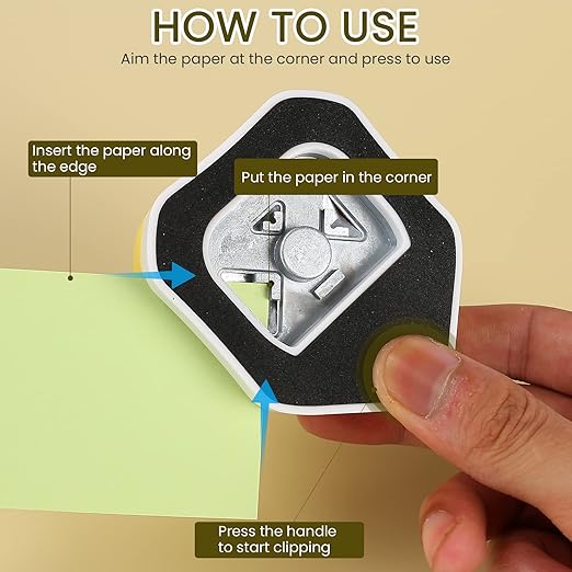 - Easy to Operate and Simple to Use: Choose your desired material and place it into the slot. Simply push the corner of your paper inside until it's properly lodged against the guides, and press the handle down. The corner is now accurately and sharply rounded.