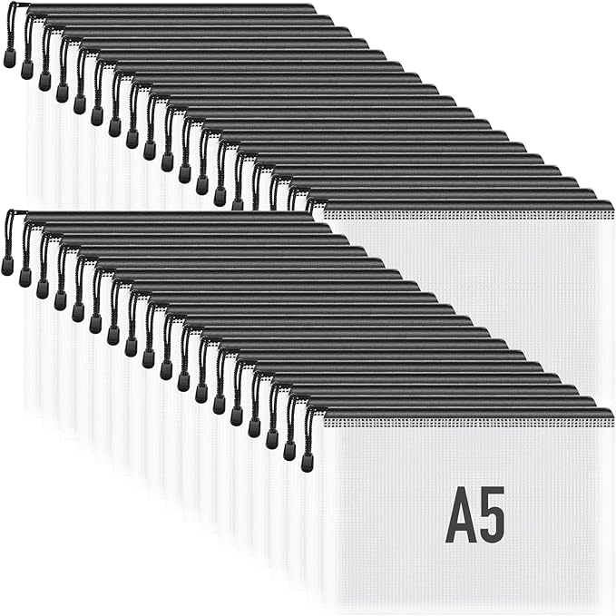 Umriox Small Zipper Pouch, 9.5x7.1 in (Black, 36 Packs), Mesh Bags with Zipper, Storage Bags, Zipper Bags for Office Supplies Travel Storage