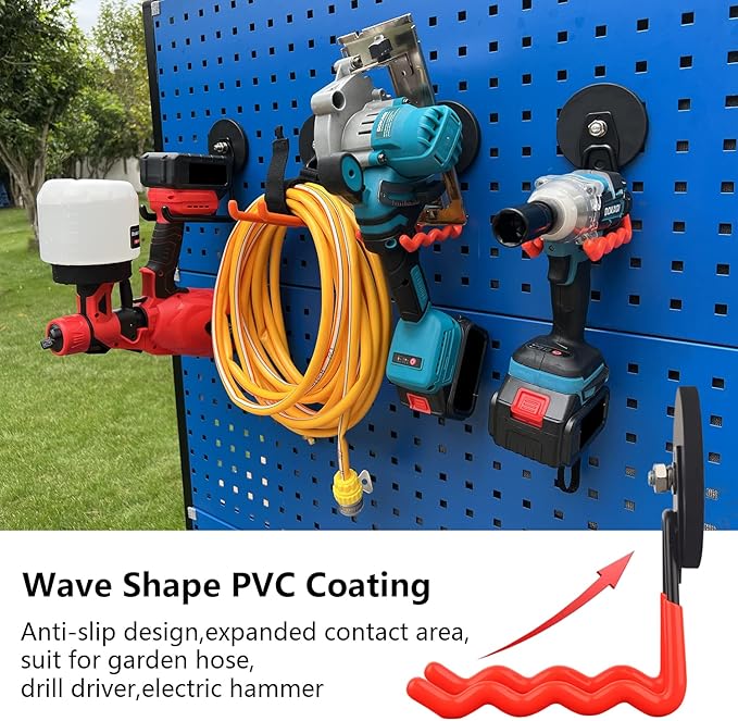 - Large Capability of Storage Hooks:Includes 2 strong magnet bases and 2 PVC coated stainless steel hooks,which can hold 2 heavy duty battery operated power tools such as cordless drills, impact drivers, power spanners, water pipes, shovels etc.