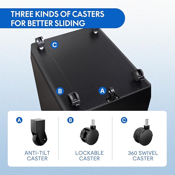 - 【User-friendly Locking Mechanism】The interlock system secures all 3 drawers and comes with two keys to protect your files and valuables. To avoid tipping, only 1 drawer can be opened at a time.