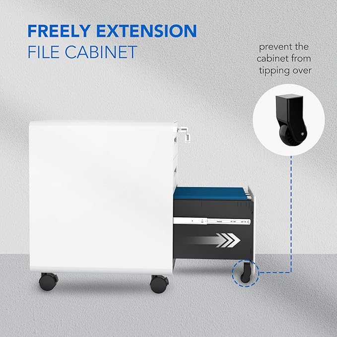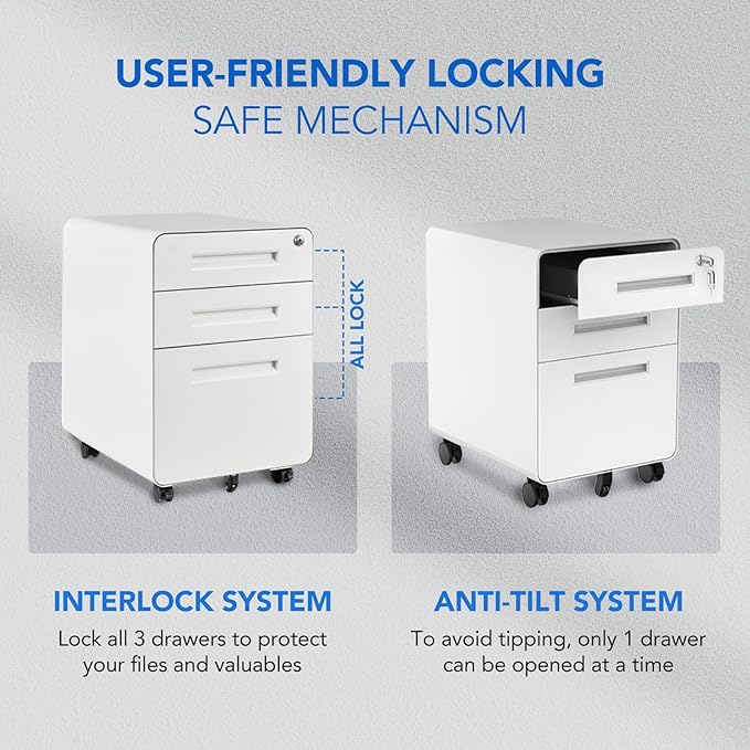 - 【User-friendly Locking Mechanism】The interlock system secures all 3 drawers and comes with two keys to protect your files and valuables. To avoid tipping, only 1 drawer can be opened at a time.