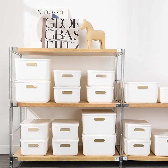 Plastic Storage Baskets Bins Boxes With Lids,Organizing Container White Storage Organizer Bins For Shelves Drawers Desktop Playroom Classroom Office,6-Pack(4M+2S)
