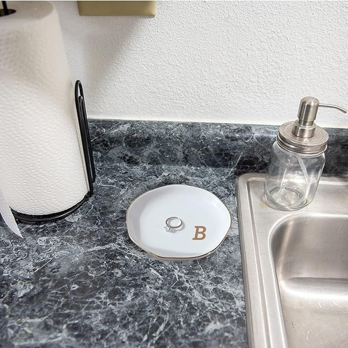 Initials Ring Dish Jewery Tray with Personalized B-Monogrammed Gifts Wedding Engagement for Women Friends sister,Ceramic White